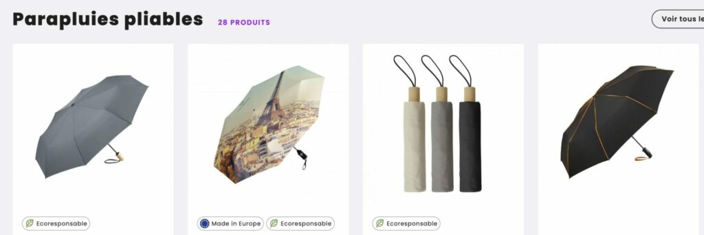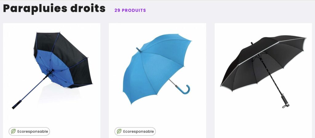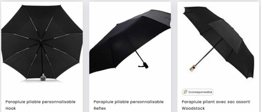 Les parapluies inversés, dernière innovation du secteur, se replient vers l’extérieur, gardant les gouttes d’eau à l’écart de l’utilisateur. Ces modèles originaux attirent l’attention et positionnent votre marque comme innovante et attentive au confort de ses clients. Chaque type de parapluie correspond à un usage spécifique et permet de cibler précisément votre audience.